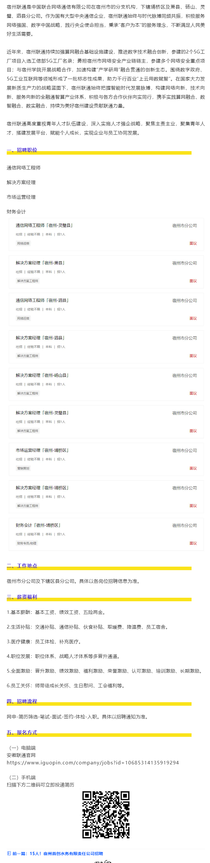 宿州联通四县一区招聘启事