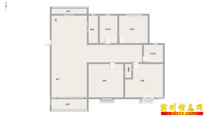 粮干校,三室双卫130平方 54.8万