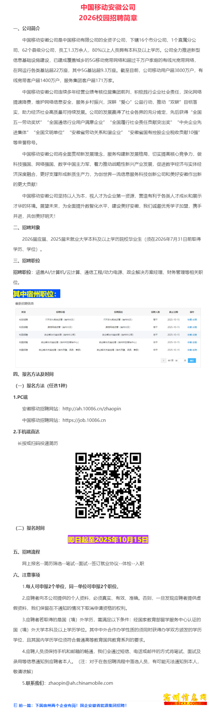 宿州公司多岗位招聘!中国移动安徽公司招聘