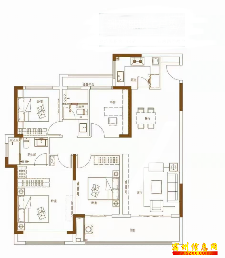 翡翠悦府毛坯150平四室两厅两卫96平