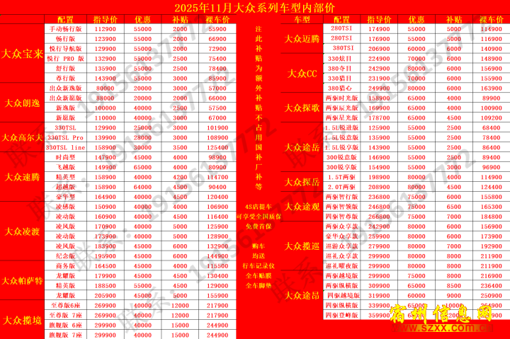 大众系列内部报价单
