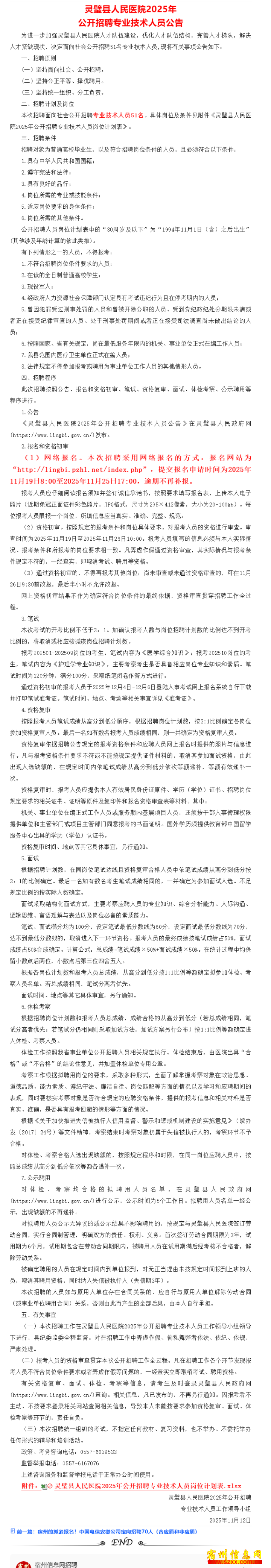 51名!灵璧县人民医院公开招聘!