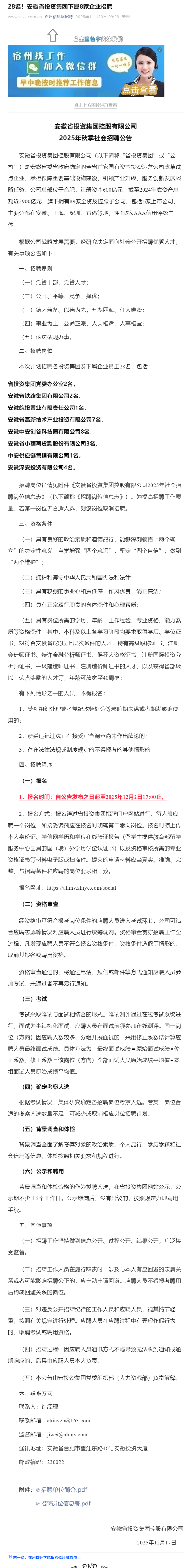 28名!安徽省投资集团下属8家企业招聘