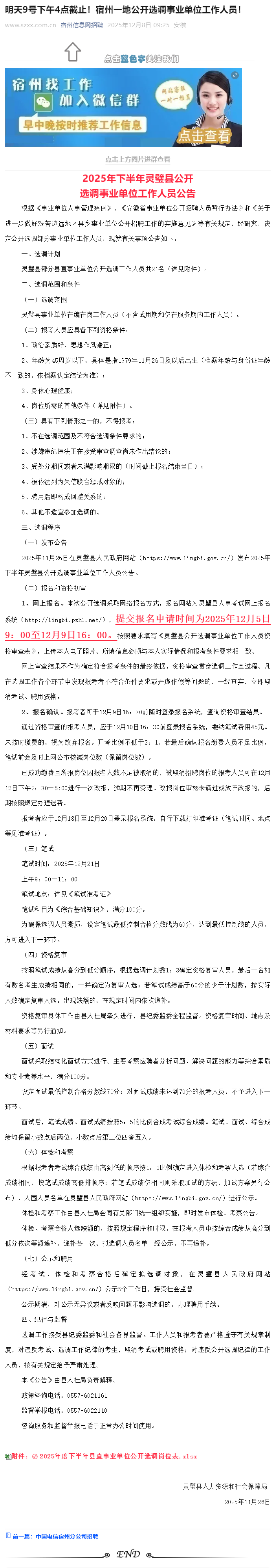 2025年下半202年灵璧县公开选年灵璧调事业单位工作人员公告