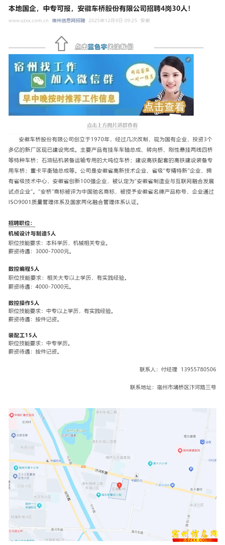 宿州找工作进微信群,早中晚按时推荐工作。兼职、临时工也很多,宿州信息网主办!