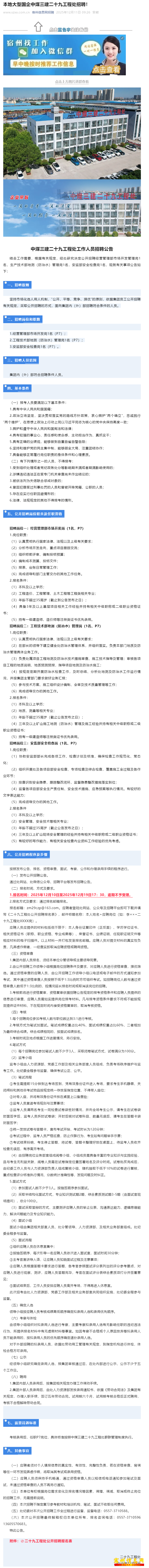 本地大型国企中煤三建二十九工程处招聘!