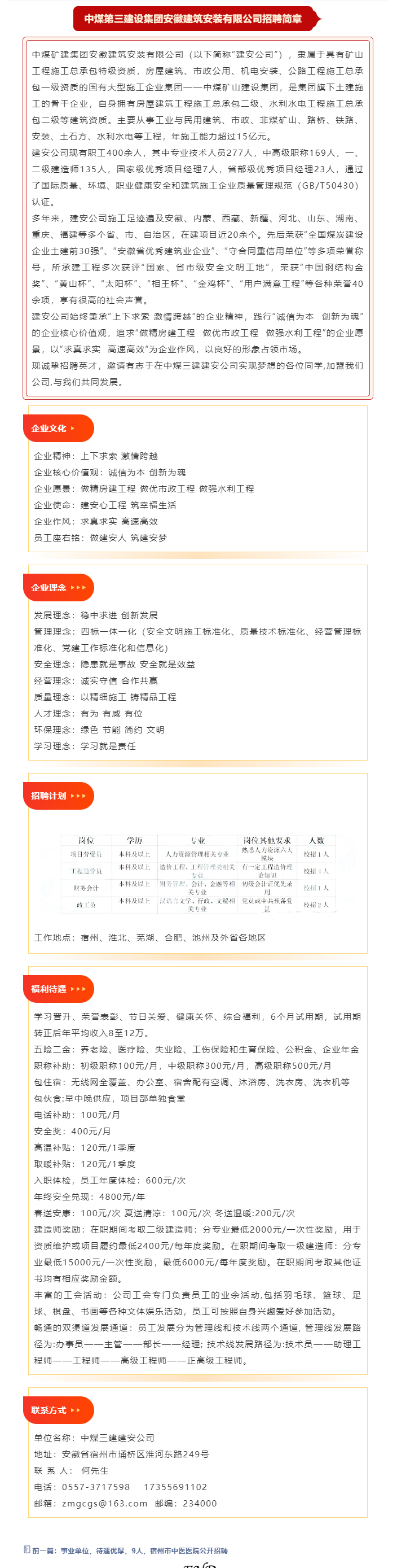 【五险两金】,宿州中煤第三建设集团