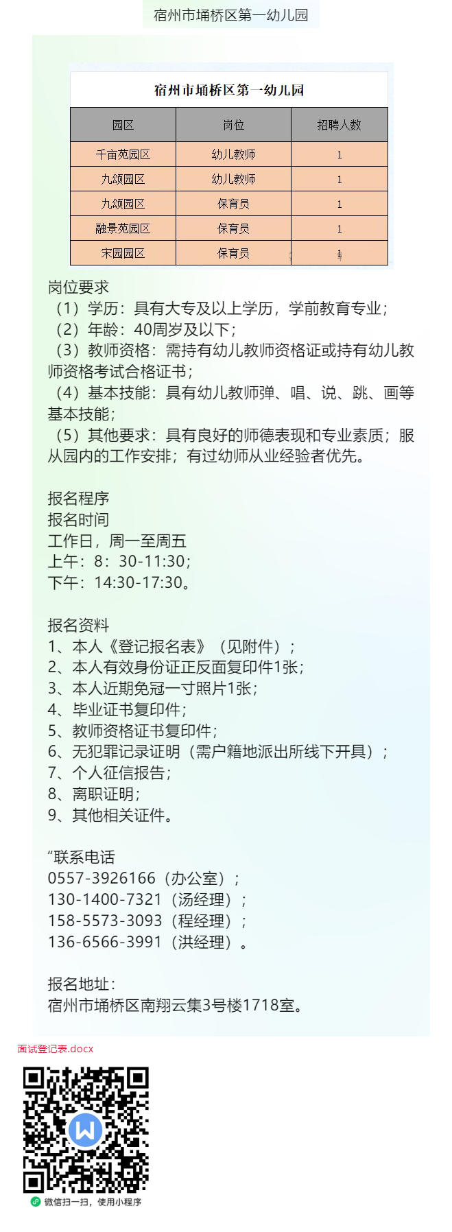 埇桥区第一幼儿园招聘5人