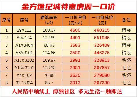 金方世纪城现房,清盘特惠,精装毛坯任选。