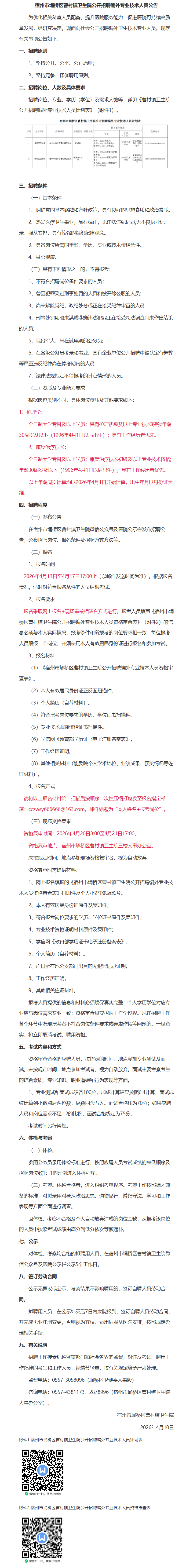 今日报名,埇桥区曹村镇卫生院公开招聘